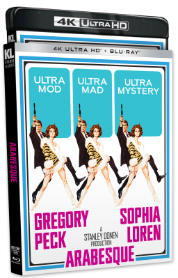 Ultra Mod, Ultra Mad, Ultra Mystery! Enter the world of Arabesque—a high-speed, high-class tale of international intrigue starring screen icons Gregory Peck (The Guns of Navarone, Mirage) and Sophia Loren (Five Miles to Midnight, Marriage Italian Style). An American hieroglyphics professor (Peck) is hired by a mysterious Arab oil magnate to decipher a secret message. When the hidden meaning is revealed, the chase is on as he and the oil magnate’s exotic yet unpredictable companion (Loren) find themselves caught in the middle of an assassination plot. The great Stanley Donen (Singin’ in the Rain, Charade) directed this exciting romantic thriller that features the stylish music of Henry Mancini (The Pink Panther, Touch of Evil) and the acting talents of Alan Badel (Force 10 from Navarone), Kieron Moore (David and Bathsheba) and George Coulouris (Citizen Kane).