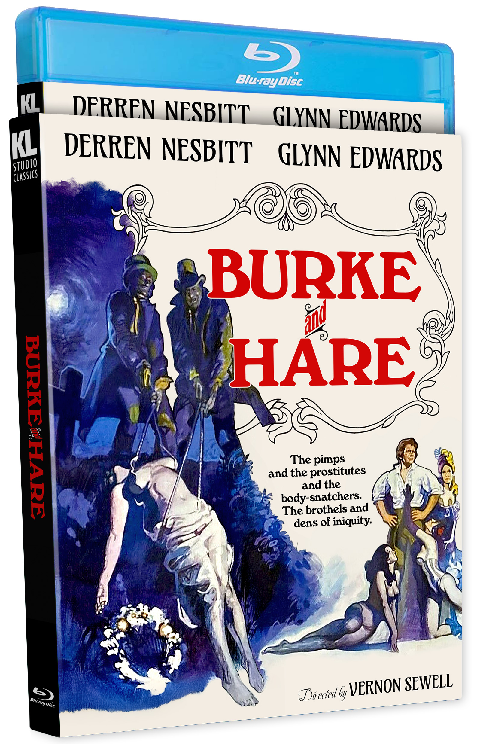 Two of the most notorious figures in the history of medicine, William Burke and William Hare were a pair of enterprising street thugs who provided anatomical specimens to the Edinburgh Medical College—often by robbing the graves of the recently dead, sometimes through even more nefarious methods. Derren Nesbitt and Glynn Edwards bring these two scoundrels to life in Burke & Hare, a colorful, early-’70s rendition of life in the taverns, brothels and surgical theatres of 1820s Scotland. While other filmmakers have treated the Burke and Hare murders as a source of Gothic horror, director Vernon Sewell (The Blood Beast Terror) offers a playful spin on the Irish body snatchers, blending dark comedy with bawdy eroticism, seasoning it with the grotesque, then crowning it with a playful theme song by the pop band The Scaffold.
