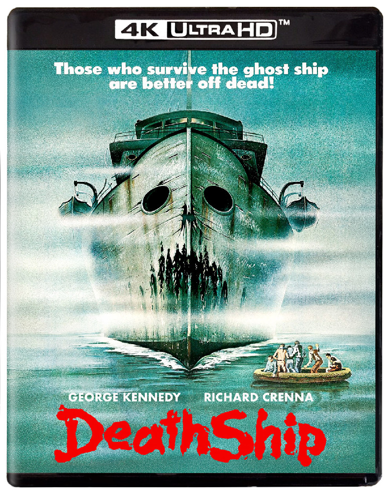 What in the living hell is on board? Screen great George Kennedy (Thunderbolt and Lightfoot, Airport films) stars with Richard Crenna (Wait Until Dark, Rambo films), Nick Mancuso (Rapid Fire, The Ex) and Saul Rubinek (Unforgiven, Death Wish V) in this terrifying tale of a possessed ship searching for new victims on the high seas! An ocean liner carrying vacationing passengers collides with a mysterious freighter. The handful of survivors seek refuge aboard the sinister freighter—which turns out to be possessed by the evil forces that once commanded it! This is no ordinary ship...it’s a killing machine! Also starring Sally Ann Howes (Chitty Chitty Bang Bang) and Kate Reid (The Andromeda Strain); directed by Alvin Rakoff (City on Fire) and based on a story by Jack Hill (Foxy Brown)—Pray you are never rescued by the DEATH SHIP! This special edition also includes the extended cut in HD!