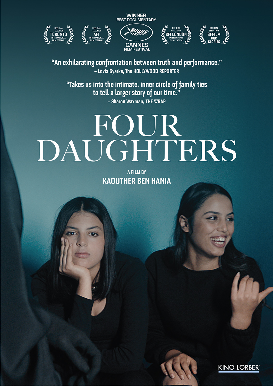 One of the year's most acclaimed releases, this riveting documentary by two-time Oscar®-nominated filmmaker Kaouther Ben Hania (The Man Who Sold His Skin) uses an audacious formal conceit to tell the story of Olfa Hamrouni and her four daughters. Attempting to answer the question of how and why the Tunisian woman’s two eldest were radicalized, Ben Hania reveals a complex history. We watch as the family relives key events in their lives with help from professional actors standing in for the missing girls. Winner of the Best Documentary award at the Cannes Film Festival, Best Documentary Feature at the Gotham Awards, and Best Writing at the IDA Documentary Awards, Four Daughters is a compelling portrait of five women and a unique and ambitious work of nonfiction cinema that pushes against the conventional boundaries of the documentary form to explore the nature of memory, rebellion, and the ties that bind mothers and daughters.