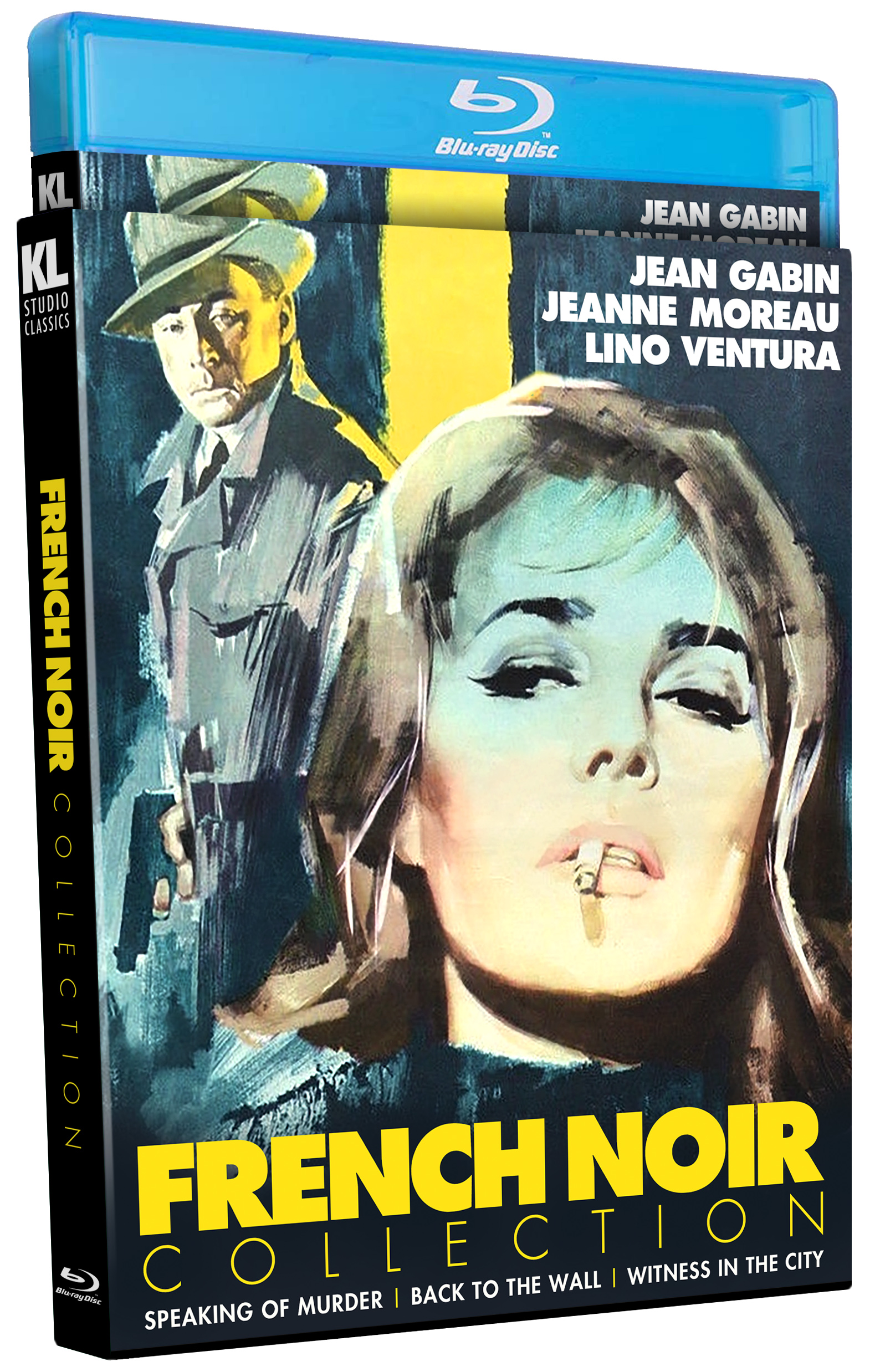 This collection features three film noir classics from France. SPEAKING OF MURDER (1957) a.k.a. LE ROUGE EST MIS – From acclaimed crime writer Auguste Le Breton (Rififi, Bob Le Flambeur) comes this gripping noir thriller starring cinema icon Jean Gabin (Rififi in Paris, The Sicilian Clan). Louis Bertain (Gabin) is the owner of a Paris garage which serves as a front for a gang of thieves. He and his accomplices are careful to keep up a civic veneer by day, indulging in criminal activities only when “the red light is on” at night. This status quo is upset when one of the gang members becomes convinced that Louis’ younger brother is a police informer. Featuring taut direction from Gilles Grangier (The Night Affair) and excellent supporting turns by Paul Frankeur (Touchez Pas Au Grisbi), Marcel Bozzuffi (Illustrious Corpses), Lino Ventura (The Valachi Papers) and Annie Girardot (Maigret Sets a Trap). BACK TO THE WALL (1958) a.k.a. LE DOS AU MUR – Screen legend Jeanne Moreau (Elevator to the Gallows, Seven Days... Seven Nights) stars in this twisty, mood-drenched film noir from acclaimed crime writer Frédéric Dard (Rendezvous). When wealthy industrialist Jacques Decrey (Gérard Oury, Sea Devils) discovers that his wife (Moreau) is having an affair with a young actor, he decides to exact revenge by blackmailing her under an assumed identity. In the film’s bravura introductory sequence, we witness Jacques meticulously disposing of a corpse—just a taste of the pitch-black intrigue to follow in director Édouard Molinaro’s (Witness in the City) stylish tour de force, featuring dazzling black-and-white cinematography. Co-starring Philippe Nicaud (The Mysterious Island) and Claire Maurier (The 400 Blows). WITNESS IN THE CITY (1959) a.k.a. UN TÉMOIN DANS LA VILLE – Based on a novel by the legendary Thomas Narcejac (Diabolique, Vertigo, Eyes Without a Face), this dark tale of vengeance stars the great Lino Ventura (Razzia Sur La Chnouf, A Pain in the Ass) in an early leading role. Industrialist Pierre Verdier kills his mistress Jeanne Ancelin by throwing her off a train. Her husband (Ventura) decides to take revenge on his wife’s murderer, who has been acquitted by justice. Directed by Édouard Molinaro (Back to the Wall) and shot by Henri Decaë (Diabolically Yours), Witness in the City is a pulse-pounding film noir set on the grim and gritty streets of Paris. Co-starring Fellini favorites Sandra Milo (8½) and Franco Fabrizi (I Vitelloni), with Jacques Berthier (Shoot First… Ask Questions Later), Daniel Ceccaldi (Rififi in Paris) and Françoise Brion (L’Immortelle). All three films were restored in 2K.