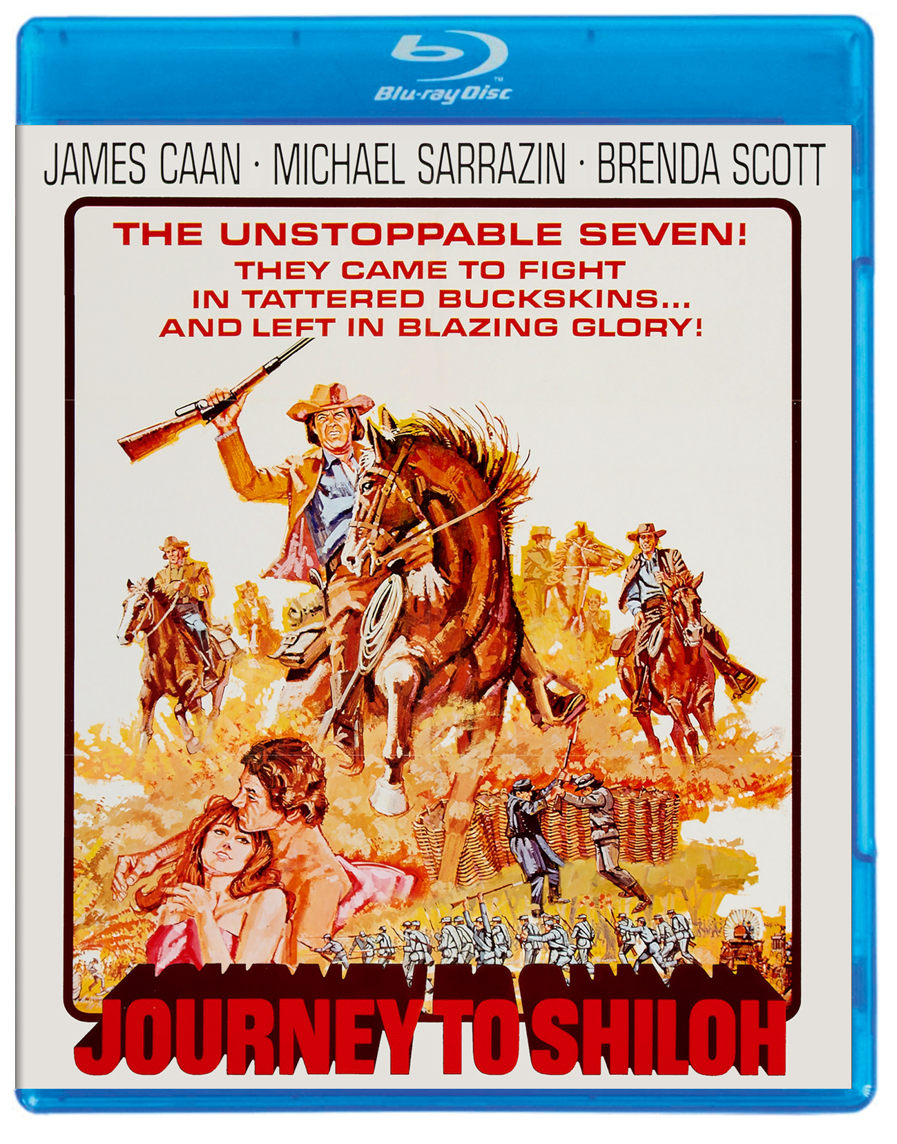 At the onset of the Civil War, seven young Texans hope to join up with General Hood’s Confederate forces. Calling themselves the Concho County Comanches, the eager cowboys embark on a long and arduous journey eastward and encounter class prejudice and mounting danger along the way. They end up at the bloody Battle of Shiloh, where their courage is tested beyond their wildest expectations. The fresh-faced Wild Bunch are played by James Caan (Misery), Michael Sarrazin (They Shoot Horses, Don’t They?), Paul Petersen (Houseboat), Don Stroud (Joe Kidd), Michael Burns (Stranger on the Run), Jan-Michael Vincent (Defiance) and Harrison Ford (Force 10 from Navarone) in one of his earliest roles. Brenda Scott (Simon, King of the Witches), John Doucette (One More Train to Rob), Noah Beery (Wings of the Hawk), Tisha Sterling (Coogan’s Bluff), James Gammon (The Milagro Beanfield War), Rex Ingram (Anna Lucasta) and Albert Popwell (Charley Varrick) round out the cast of this rousing western from director William Hale (S.O.S. Titanic) and novelist Heck Allen a.k.a. Will Henry (Young Billy Young).