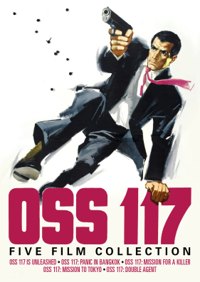 Hubert Bonisseur de La Bath, alias OSS: 117, first appeared in the 1957 film OSS 117 n’est pas mort (OSS 117 Is Not Dead). After the highly successful 1962 release of Dr. No, the character was brought back into action in the 1963 film OSS 117 se déchaîne (OSS 117 Is Unleashed) starring Kerwin Matthews (Jack the Giant Killer) as the suave secret agent, the first of the 5 films in this beautifully restored collection and co-starring Irina Demick (The Sicilian Clan). A year later Matthews returned as OSS 117 in the 1964 film Banco à Bangkok pour OSS 117 (OSS 117: Panic in Bangkok) which co-starred Robert Hossein (Cemetery Without Crosses) and Pier Angeli (The Silver Chalice). In 1965 Frederick Stafford, the star of Hitchcock’s Topaz, took over the OSS 117 role in the film Furia à Bahia pour OSS 117 (OSS 117: Mission for a Killer) and reprised the role in the 1966 film Atout coeur à Tokyo pour OSS 117 (OSS 117: Mission to Tokyo). After a one-year hiatus OSS 117 returned in the 1968 film Pas de roses pour OSS 117 (OSS 117 - Double Agent) – starring John Gavin (Psycho, Spartacus) as the deadly agent with Curt Jurgens (Karl Stromberg of The Spy Who Loved Me), Margaret Lee (Secret Agent Super Dragon), Luciana Paluzzi (Fiona of Thunderball), George Eastman (The Unholy Four) and Robert Hossein appearing in his second OSS 117 film.
