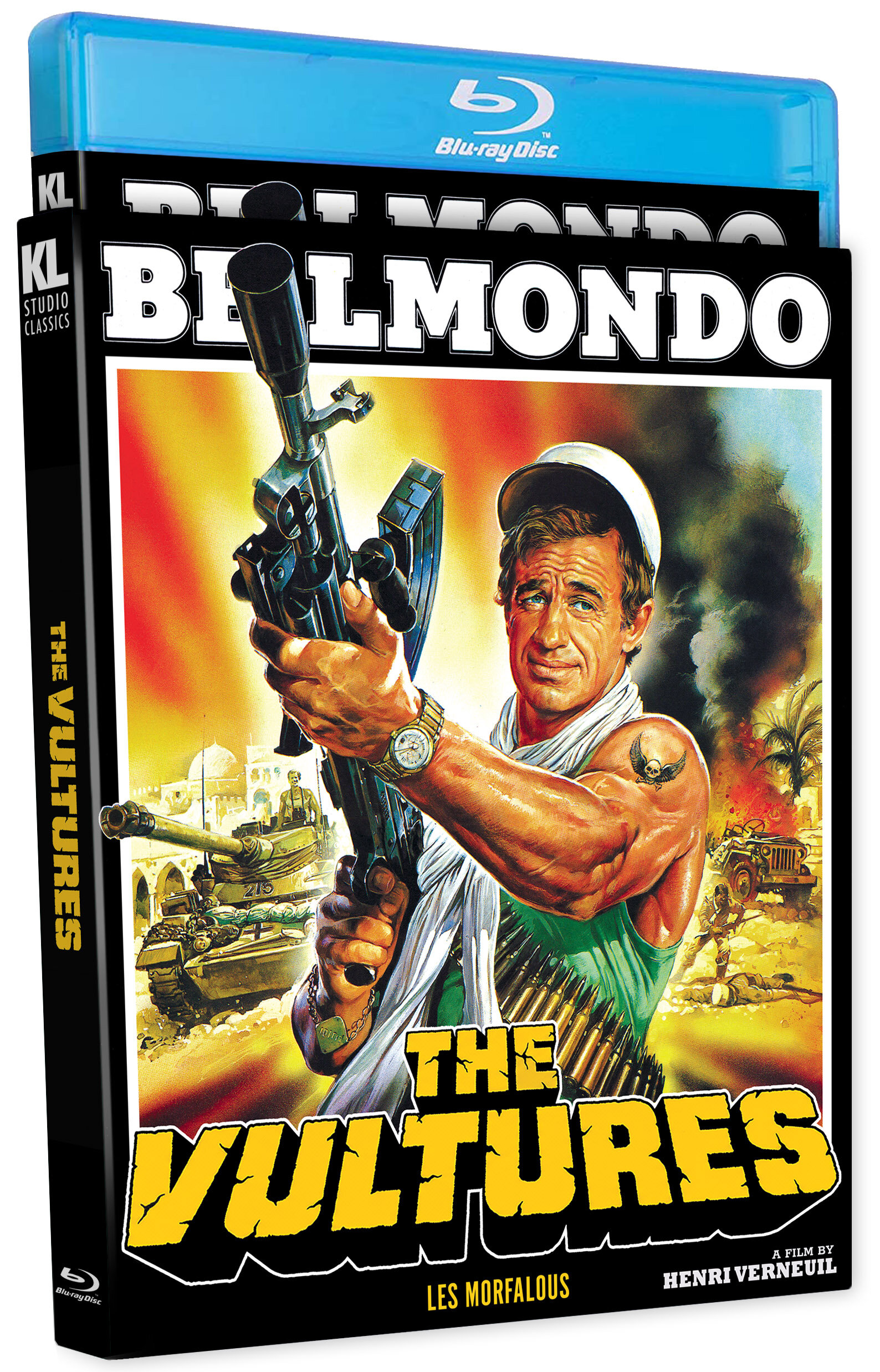 April 1943. Tunisia, occupied by the Germans, is ravaged with warfare. A column of the Foreign Legion enters El Ksour, a city on the coast. Its mission is to retrieve six billion francs worth of gold ingots from the bank and convoy them to Sfax. But the enemy is waiting and when dawn strikes in the dead city, there are only a few French survivors—four “Morfalous,” or “Vultures.” The mission continues. But when Sergeant Augagneur (screen legend Jean-Paul Belmondo) feasts his eyes on the safe in the vault of the bank, he starts dreaming and scheming… Four survivors, six billion: one billion and a half each. Director Henri Verneuil (The Body of My Enemy) strikes gold with this French Kelly’s Heroes riff, with Belmondo (Le Professionnel) in peak wise-cracking, bone-cracking form. Sweepingly shot on location in Tunisia, The Vultures (a.k.a. Les Morfalous) also features the rugged Michel Constantin (La Scoumoune), dazzling Marie Laforêt (Cop or Hood) and an epic soundtrack by Georges Delerue (That Man from Rio).