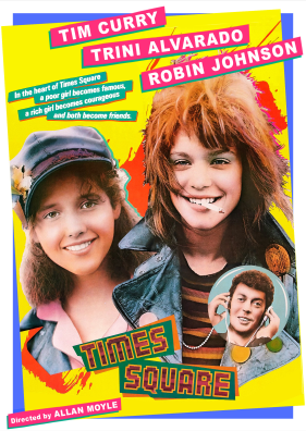 Rich girl Pammy (Trini Alvarado, Stella) is the sheltered daughter of a prominent politician. Wild child Nicky (Robin Johnson, D.O.A.) is a tough runaway. Together, the two teens escape from a psychiatric hospital and with the help of radio DJ Johnny LaGuardia (Tim Curry, The Rocky Horror Picture Show), become punk rock heroes on the streets of New York City. But just as their outrageous new life begins to come together, they find that society wants to tear them apart. Can a sisterhood that runs soul deep survive the cold heart of the city? Produced by Robert Stigwood (Saturday Night Fever, Grease) and directed by Allan Moyle (Pump Up the Volume, Empire Records), Times Square features an amazing soundtrack of hits from Patti Smith, The Cure, Lou Reed, The Ramones, The Pretenders, Roxy Music, Robin Gibb, Gary Numan, Suzi Quatro, Talking Heads, Joe Jackson, XTC and more.